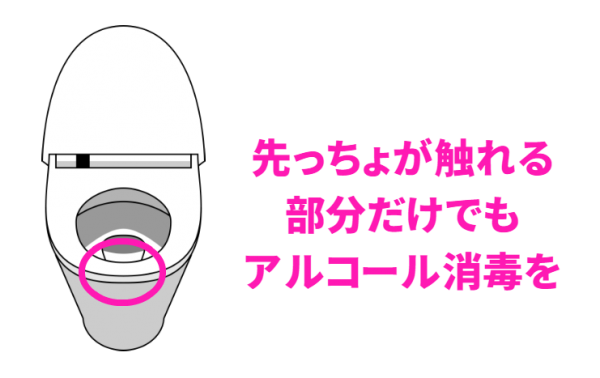 先っちょが触れそうな便座の先端付近の内側をアルコール消毒